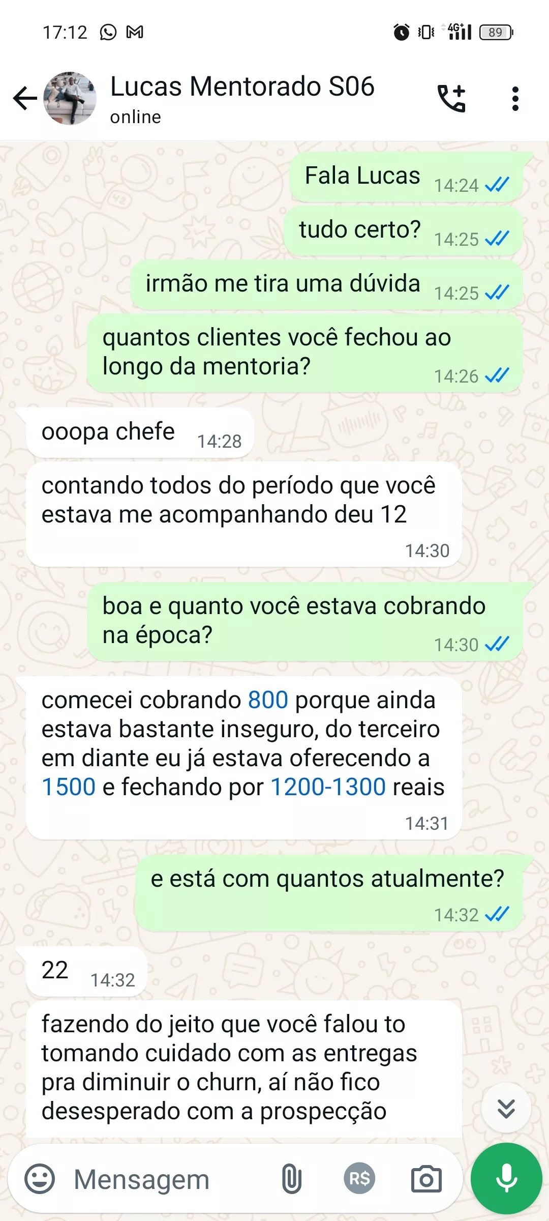 Após anos de estudo e mentoria com grandes nomes como Flávio Augusto da Silva, Caio Carneiro e Marcelo Ortega e muita prática no campo de batalha eu desenvolvi um método próprio — simples, eficaz e adaptável — que já ajudou centenas de pessoas a fecharem seus primeiros contratos, mesmo aqueles que não tinham experiência anterior.